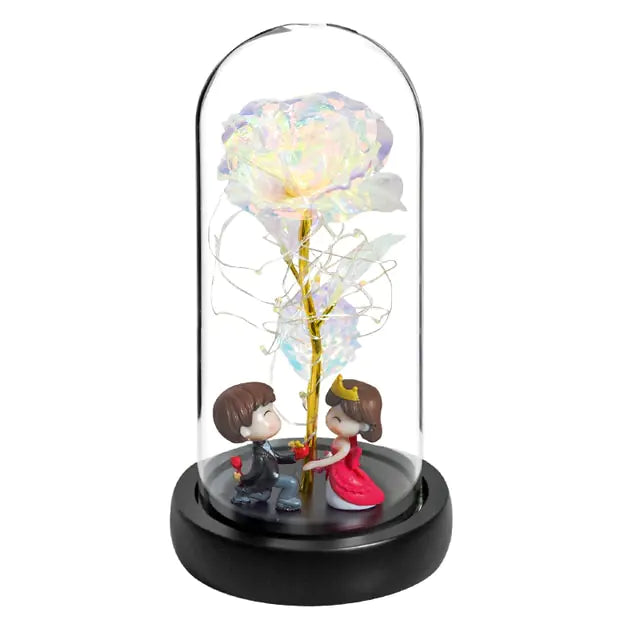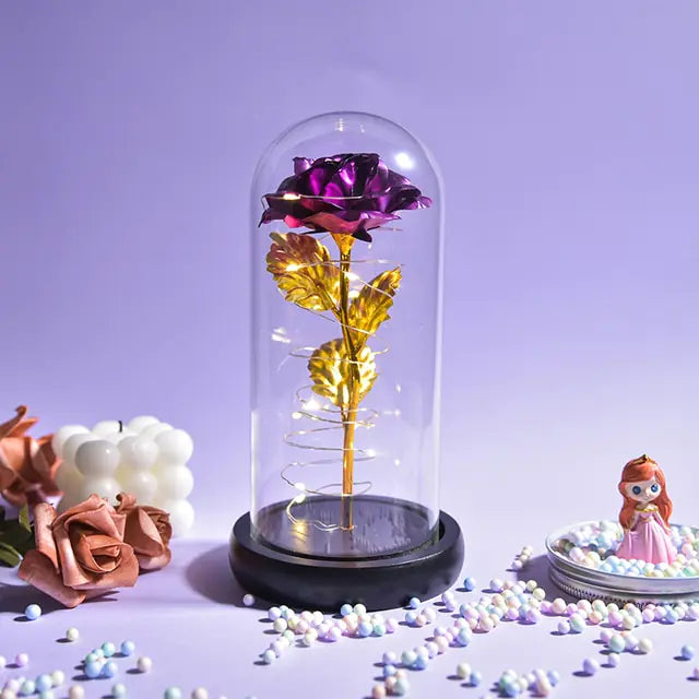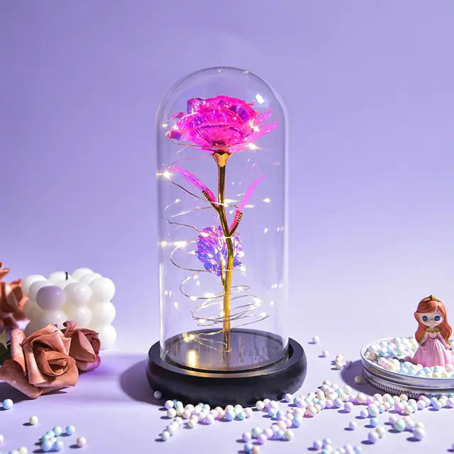 Impress your mom with our Beauty and the Beast preserved roses in glass. This enchanting gift combines the elegance of preserved roses with the magic of LED lights, creating a stunning display that will captivate her heart and remind her of your love every day.